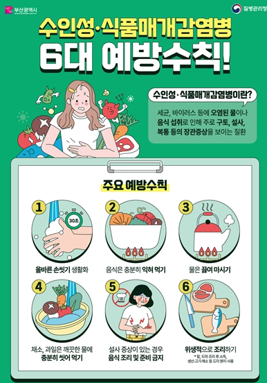 [뉴스노크=김인호 기자] 부산시는 최근 고온다습한 기후로 인해 수인성·식품매개감염병 발생이 증가함에 따라, 손 씻기와 음식물 익혀먹기 등 예방수칙을 철저히 지켜줄 것을 당부한다고 밝혔다.