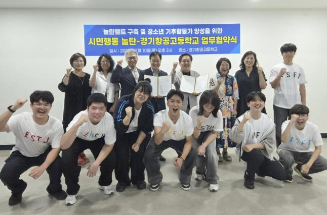 [뉴스노크=김인호 기자] 경기항공고등학교와 시민행동 놀탄이 10일 ‘놀탄벨트 구축 및 청소년 기후활동가 양성을 위한 업무협약’을 체결했다.