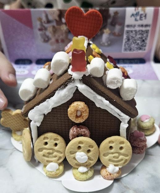 | ▲ 27일 프로그램 참여 아동이 만든 과자집 모습. |