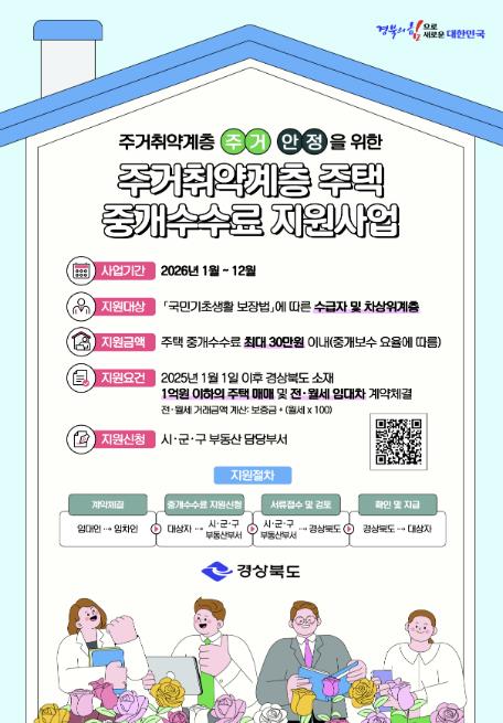 [뉴스노크=김인호 기자] 상주시는 주거 취약계층의 경제적 부담을 완화하고 안정적인 주거환경 조성을 위하여 2026년 1월부터 “주거 취약계층 주택 중개보수 지원사업”을 시행한다.