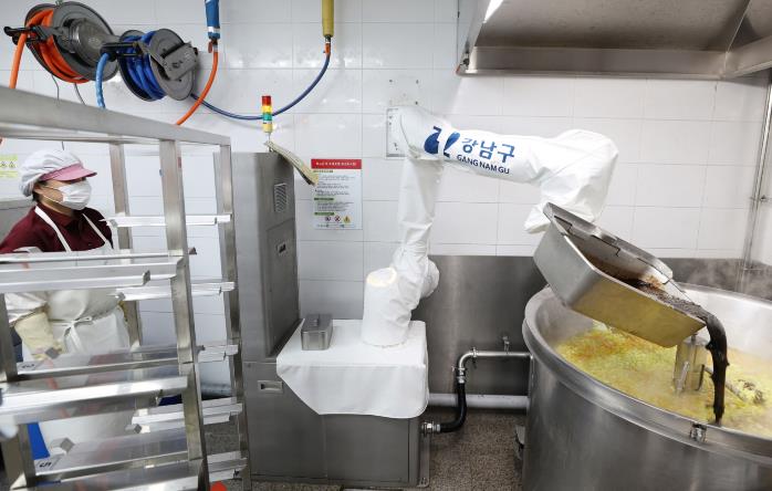 [뉴스노크=김인호 기자] 꿈이 모이는 도시, 미래를 그리는 강남구가 지난해 9∼12월 4개월간 급식 조리 로봇 실증사업을 진행한 결과, 근무자의 조리흄(조리 중 발생 연기·미세먼지) 노출이 28.6% 줄고 근골격계 부담이 ‘2단계→0단계’로 낮아지는 등 조리종사자의 작업환경 개선 효과가 확인됐다.