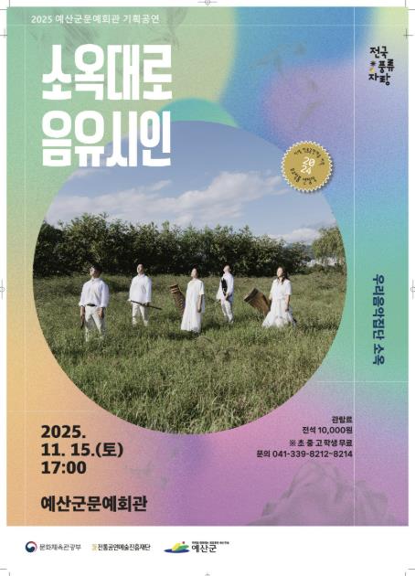 [뉴스노크=김인호 기자] 예산군문예회관은 오는 11월 15일 오후 5시, 퓨전국악 공연 ‘소옥대로 음유시인’을 선보인다.
