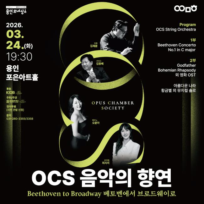 [뉴스노크=김인호 기자] 용인문화재단은 오는 3월 24일 용인포은아트홀에서 오퍼스 체임버 소사이어티(Opus Chamber Society, 이하 OCS)와 공동으로 'OCS 음악의 향연, Beethoven to Broadway' 공연을 개최한다.