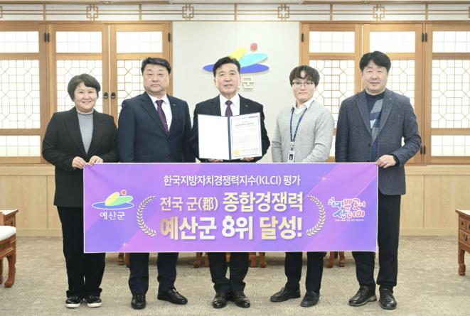 [뉴스노크=김인호 기자] 예산군은 (사)한국공공자치연구원이 발표한 ‘2025년 한국지방자치경쟁력지수(KLCI)’에서 군 단위 종합경쟁력 부문 508.1점을 기록하며 전국 82개 군 가운데 종합 8위를 차지했다고 밝혔다.