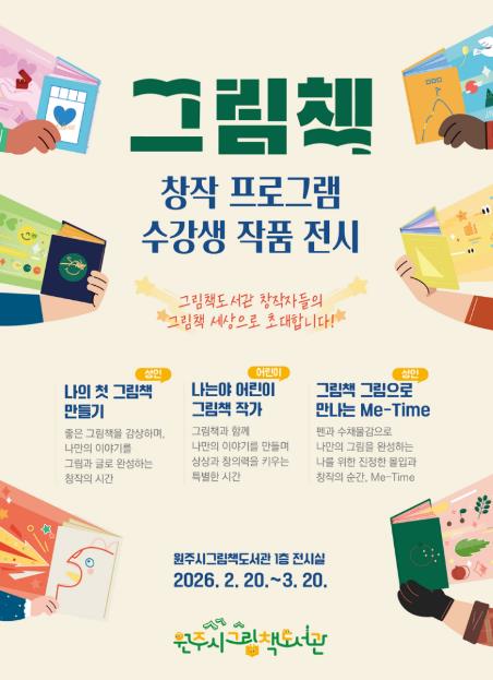 [뉴스노크=김인호 기자] 원주시 그림책도서관은 2월 20일부터 3월 20일까지 도서관 1층 전시실에서 ‘2025년 그림책 창작 프로그램 수강생 작품 전시’를 개최한다.