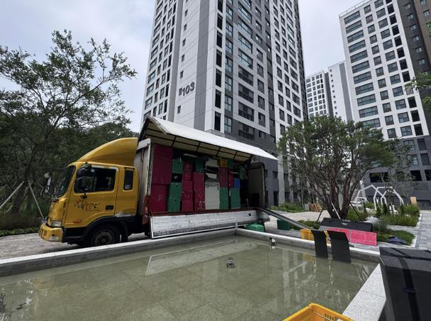 ▲ 7일 분당 아테라에 입주중인 이사 차량 모습 |