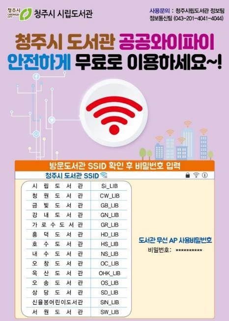 한편 청주시립도서관은 이용자의 안전한 무선 네트워크 환경 조성을 위해 보안 점검과 관리체계 강화에도 지속적으로 힘쓸 계획이다.