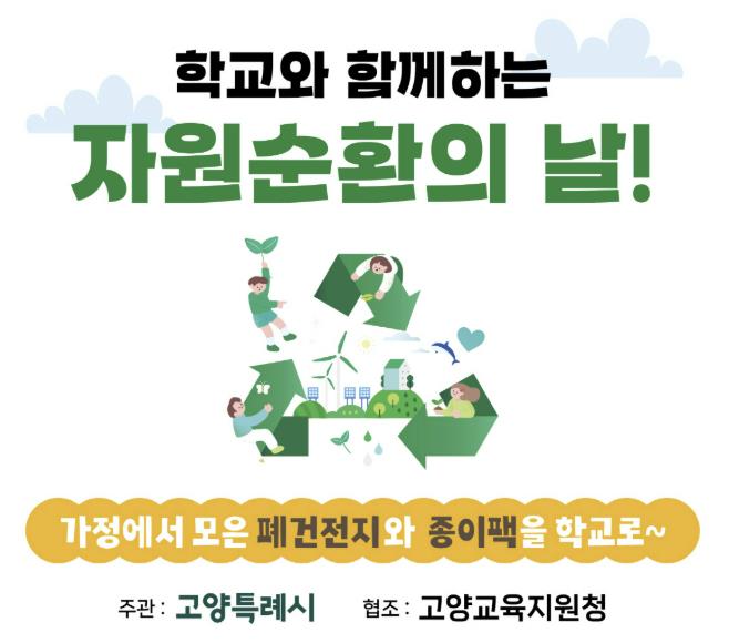 [뉴스노크=김인호 기자] 고양특례시는 고양교육지원청과 협력해 ‘학교와 함께하는 자원순환의 날’을 오는 14일부터 시작한다고 밝혔다.
