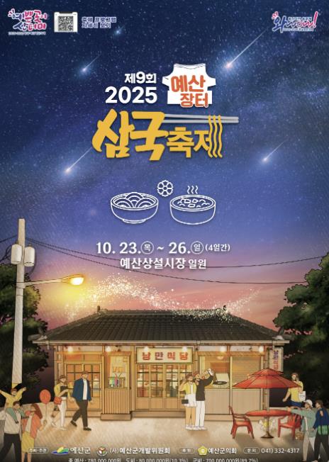 군 관계자는 “다양한 즐길거리와 볼거리로 가득한 제9회 예산장터 삼국축제에 많은 군민과 관광객이 함께해 주시길 바란다”며 “지역 상권과 관광 회복에 보탬이 되는 착한 축제가 될 수 있도록 최선을 다하겠다”고 말했다.