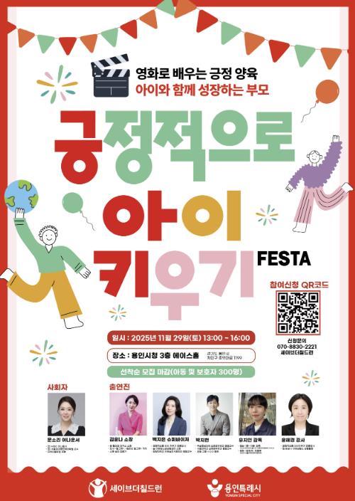 [뉴스노크=김인호 기자] 용인특례시는 세이브더칠드런과 ‘긍정적으로 아이키우기 페스타’를 29일 시청 에이스홀에서 개최한다고 25일 밝혔다.