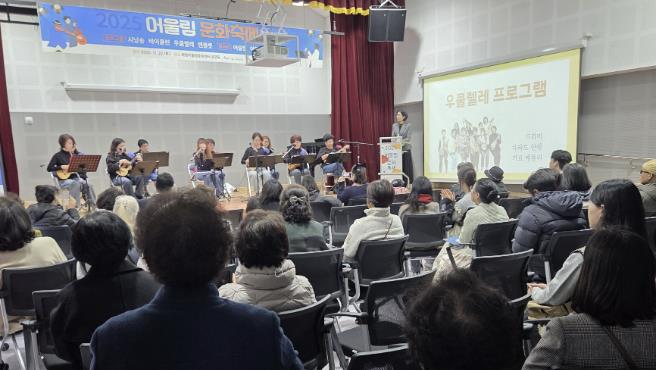 ‘2025 어울림문화축제’는 22일 발표공연을 시작으로, 12월 5일까지 어울림동 전시 공간에서 작품 전시가 이어진다. 발표공연에는 우쿨렐레, 바이올린, 시낭송, 팬플루트, 통기타 등 다양한 프로그램이 무대에 올랐으며, 전시에는 보태니컬아트, 전통민화, 캘리그라피, 수묵화, 어반스케치, 인물화, 유화 등 다양한 장르의 작품이 펼쳐진다.