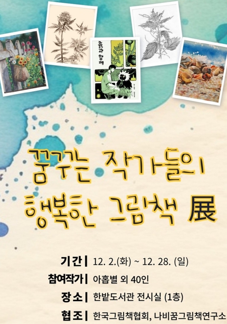 이번 전시는‘흙에서 자란 내 마음’을 주제로 열리며, 대산농촌재단의 2025년 연구지원사업 현장기술연구 공모전 당선작, 70~80대 어르신들의 인생을 담아낸 자서전 그림책과 팝업북, 한국그림책협회 회원들의 수채화 식물 일러스트, 식물 세밀화, 어린이 창작 팝업북 등 세대와 분야를 아우르는 다양한 작품을 선보일 예정이다.