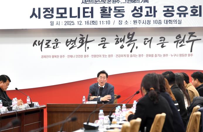 [뉴스노크=김인호 기자] 원주시 시정모니터는 지난 16일 시청 대회의실에서 ‘2025년 시정모니터 활동 성과 공유회’를 성황리에 개최했다.