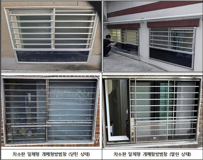 이번 사업은 집중호우와 같은 재난 상황에서 침수 피해를 줄이고, 신속한 대피가 가능하도록 돕기 위한 것으로, 창문 1곳에 차수판(물막이판) 일체형 개폐형 방범창을 무상으로 설치해준다.