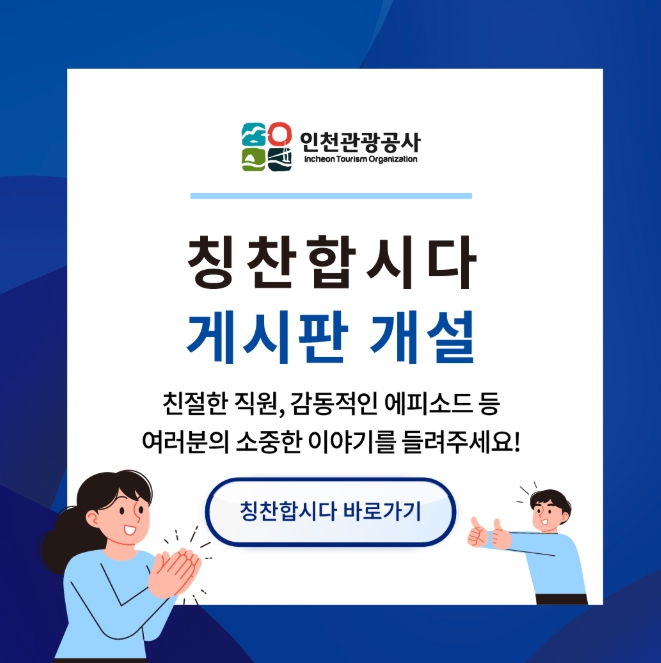 [뉴스노크=김인호 기자] 인천관광공사가 고객과의 긍정적 소통 확대를 위해 공사 홈페이지에‘칭찬게시판’을 개설했다.