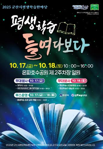 [뉴스노크=김인호 기자] 군산시가 17일~18일 2일간 은파호수공원 제2주차장 일원에서 ‘2025년 군산시평생학습한마당’을 개최한다.