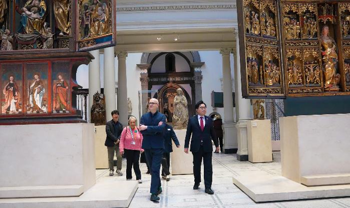 | ▲ 박일하 동작구청장과 V&A 박물관 다니엘 슬레이터 총괄감독이 16일(현지시간) 영국 런던 V&A 박물관을 둘러보고 있다. |