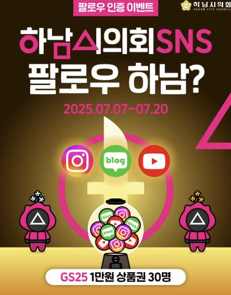 ▲ 하남시의회는 7일~20일 SNS 팔로우&구독 인증 이벤트를 진행한다. (사진_하남시의회 제공) |