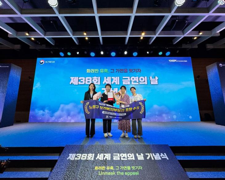 지난 12월 31일 기준 금연성공지원금 지급 대상자는 총 793명, 지급액은 총 1억 3,820만 원에 달한다. 이러한 정책 성과는 대외적으로도 인정받아, 구는 2025년 서울시 금연사업 성과대회 금연지원서비스 부문 장려상, 제38회 세계 금연의 날 기념 보건복지부장관 표창을 수상했다. 특히 보건복지부 표창은 전국 보건소 가운데 10곳만 선정되는 것으로, 금연환경 조성 분야 우수 기관으로 대표 수상하는 쾌거를 이뤘다.