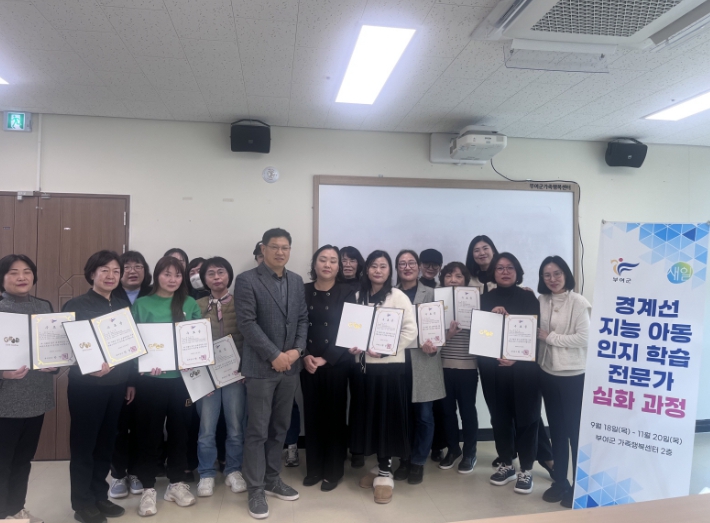[뉴스노크=김인호 기자] 부여군은 지난 11월 20일, 부여 여성새로일하기센터에서 경계선 지능 아동 지원을 위해 양성해 온 ‘ 인지학습 전문가 과정’ 심화 교육이 최종 종료되어 수료식을 개최했다.