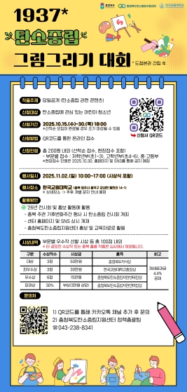 대회는 오전 10시부터 오후 5시까지 진행되며 시상식도 같은 날 현장에서 열린다. 우수 작품은 향후 충북도의 탄소중립 관련 각종 홍보와 교육자료로 활용되며, 내년 지구의 날(4월 22일) 전후 열리는 기후변화주간 행사에 전시될 계획이다.