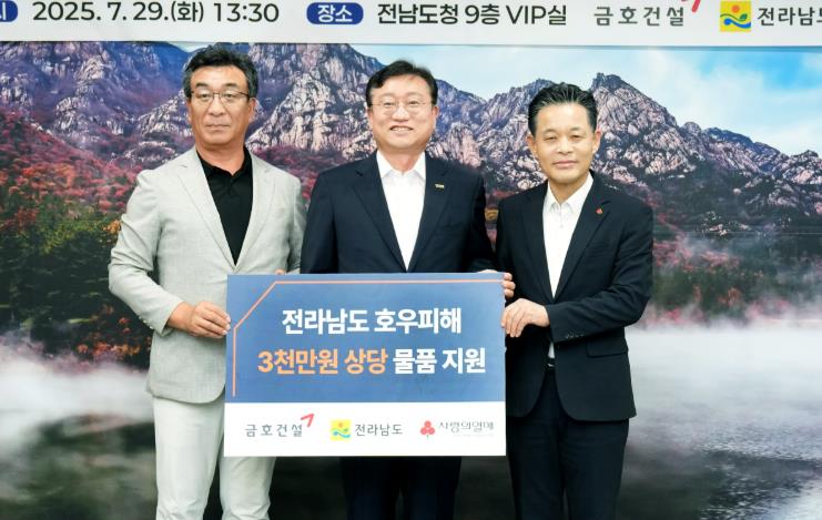 [뉴스노크=김인호 기자] 전라남도는 금호건설㈜이 집중호우로 큰 피해를 본 전남지역 주민과 자원봉사자를 돕기 위해 3천만 원 상당 물품을 기탁했다고 밝혔다.