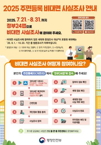 방문 조사는 9월 1일부터 10월 23일까지 이·통장 및 읍·면·동 공무원이 거주지에 직접 방문하여 확인하는 방식으로 진행될 예정이다.
