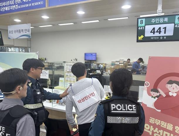 [뉴스노크=김인호 기자] 원주시는 지난 10월 23일 원주시청 1층 종합민원실에서 원주경찰서(단계지구대)와 시청 청원경찰, 민원담당관 직원 등 20여 명이 합동으로 특이(악성)민원 및 비상상황에 대비하여 현장대응 모의훈련을 진행했다.