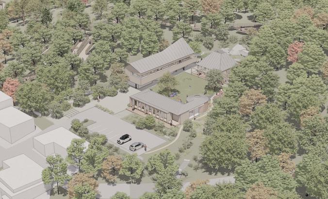 지상 1층 2개 동, 지상 2층 1개 동을 합쳐 총 3개 동으로 건립되는 산림복합체험센터는 ▲음악 작은 도서관 ▲정원 카페 ▲정원 치유센터로 구성됐다.