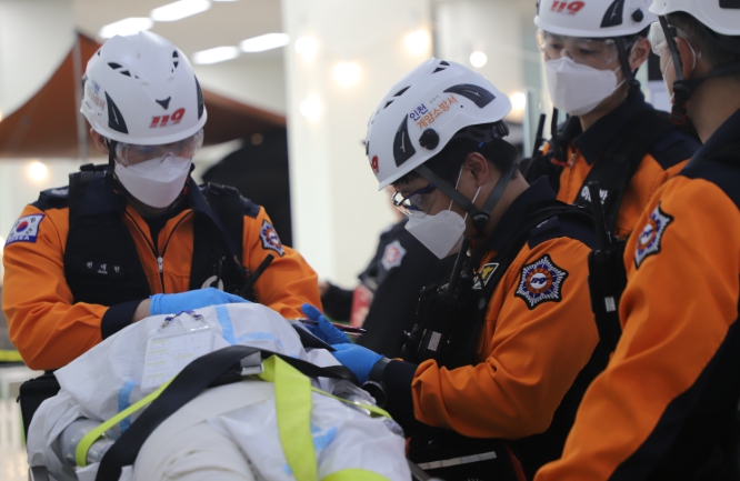 주요 훈련 내용은 ▲신속한 인명구조 및 화재진압 ▲자위소방대 초기 대응 ▲긴급구조지원기관 간 공조체계 강화 ▲다수 사상자 대응체계 확립 등이었다.