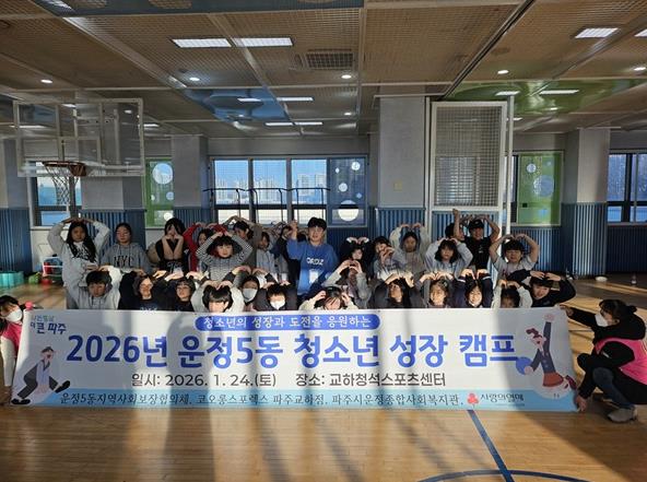 [뉴스노크=김인호 기자] 파주시 운정5동은 지난 24일, 지역 내 유관기관과의 성공적인 협업으로 초등학교 4~6학년 청소년 30명을 위한 '2026년 청소년 성장캠프'를 마무리하며, 미래 세대에게 잊지 못할 경험을 선물했다고 밝혔다.