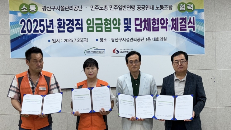 [뉴스노크=김인호 기자] 광주광역시광산구시설관리공단은 지난 7월 25일 공단 환경직 노동조합과 단체협약(임금·보충)을 무쟁의 평화 교섭으로 마무리 지었다.
