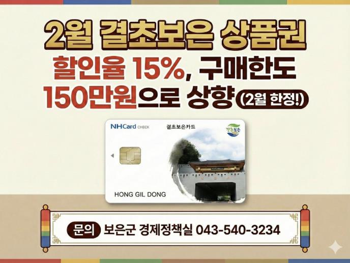 | ▲ 보은군, 설 명절 맞아 결초보은상품권 할인율·구매한도 한시 확대 |