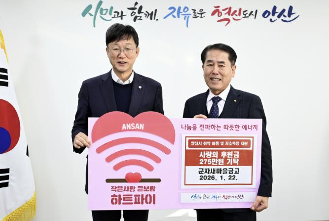 [뉴스노크=김인호 기자] 안산시는 지난 22일 군자새마을금고로부터 사랑의 후원금 275만 원을 기탁받았다고 23일 밝혔다.