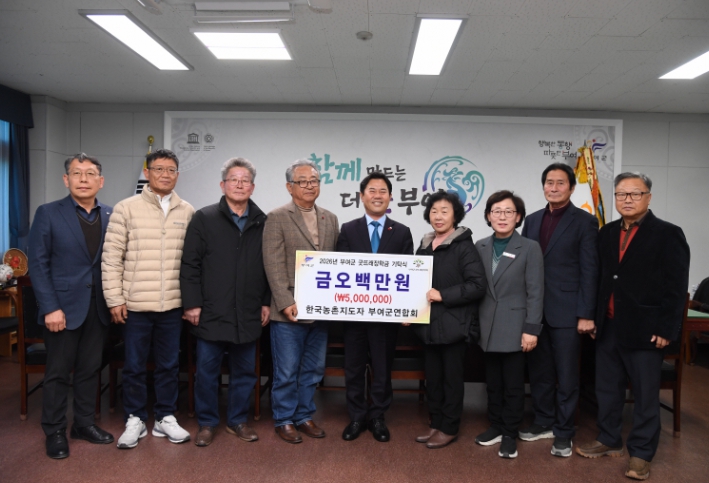 [뉴스노크=김인호 기자] 부여군농촌지도자회(회장 임병우)는 부여군청을 방문하여 인재 육성을 위한 장학금 5백만 원을 (재)부여군굿뜨래장학회에 기탁했다고 13일 밝혔다.