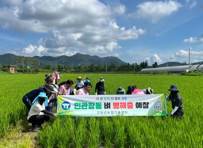 이번 민관합동 예찰은 고창군수도연구회 회원과 농업기술센터 직원 등 30여명이 참석한 가운데 벼멸구, 혹명나방 도열병, 잎집무늬마름병 등의 벼 병해충 피해를 사전예방하기 위해 마련됐다.