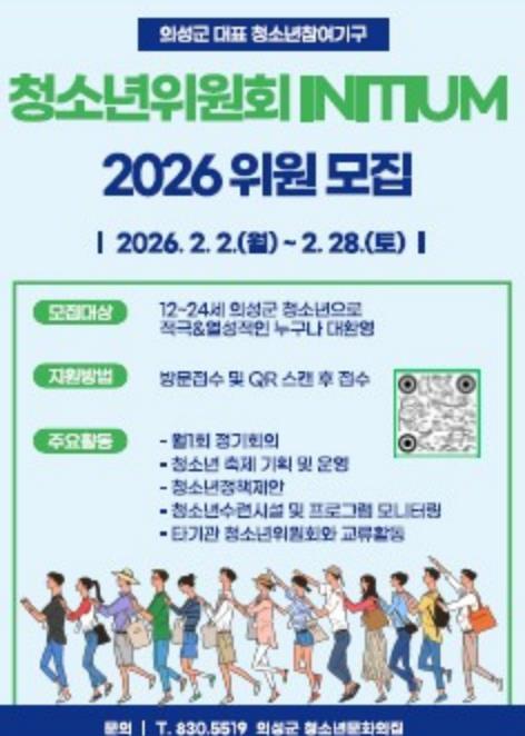 [뉴스노크=김인호 기자] 의성군은 청소년의 자치권 확대와 참여권 보장을 위해 ‘2026 의성군청소년위원회’ 신규 위원 20명을 모집한다고 밝혔다.