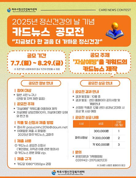 ▲ 파주시, 2025년 정신건강의 날 기념 '카드뉴스 공모전' 개최 |