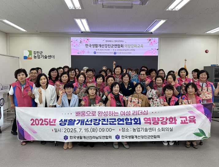 [뉴스노크=김인호 기자] 강진군이 생활개선강진군연합회 회원 38명을 대상으로 지난 15일 농업기술센터 소회의실에서 역량강화 교육을 실시했다.