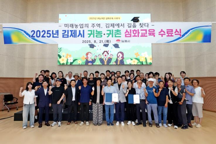 [뉴스노크=김인호 기자] 김제시는 지난 21일 농업인교육문화지원센터 2층 대강당에서 2025년 귀농·귀촌 심화교육 교육생 37명을 대상으로 수료식을 개최했다고 밝혔다.