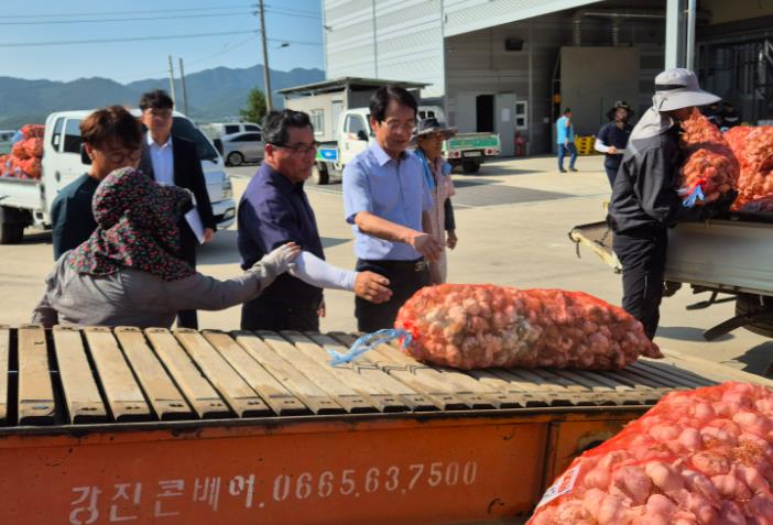▲ 강진원 강진군수가 작천면 마늘 수매 현장을 찾았다. |