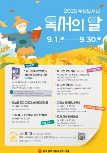 [뉴스노크=김인호 기자] 광주시립도서관(무등·사직·산수·디지털정보)은 9월 ‘독서의 달’을 맞아 시민과 함께하는 다양한 독서문화 행사를 진행한다.