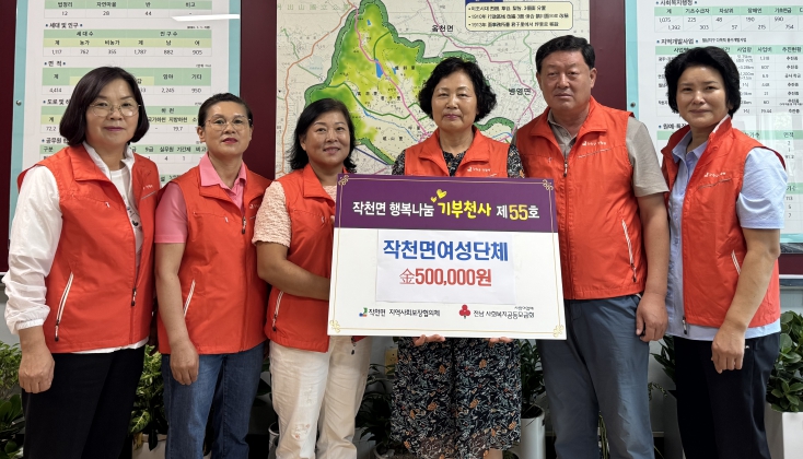 오정숙 작천면장은 “지역을 위해 늘 한마음으로 봉사하는 여성단체 여러분께 진심으로 감사드린다”며 “소중한 성금은 도움이 필요한 이웃에게 큰 위로와 희망이 되고 앞으로도 민·관이 함께하는 촘촘한 복지체계 구축에 최선을 다하겠다”고 말했다.