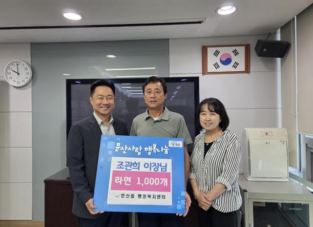[뉴스노크=김인호 기자] 파주시 문산읍은 조관희 장산2리 이장이 지난 14일 문산읍 행정복지센터를 찾아 취약계층과 복지 사각지대 이웃들을 위해 라면 1,000개(100만 원 상당)를 기부했다고 전했다.