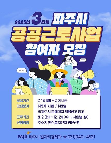 ▲ 파주시, 2025년 3단계 공공근로 참여자 149명 모집 |