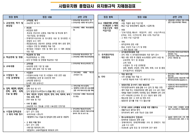 | ▲ 사립유치원 종합감사 유치원규칙 자체점검표 |