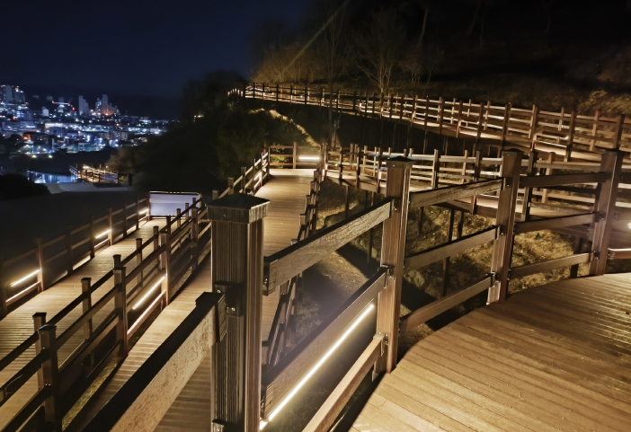 | ▲ 영주시, 가흥공원 ‘무장애 데크산책로’ 야간 모습 |