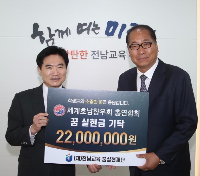 [뉴스노크=김인호 기자] 전남교육 꿈실현재단은 지난 1일 세계호남향우회 총연합회가 ‘전남 의(義) 실천 꿈 실현금’ 2,200만원을 기탁했다고 밝혔다.