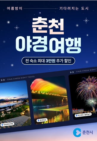춘천시 관계자는 “무더운 여름, 낮보다 밤이 더 매력적인 춘천에서 숙박비 부담은 줄이고 추억은 늘리는 여행을 하길 바란다”며 “앞으로도 개별 관광객을 위한 마케팅을 이어가겠다”고 밝혔다.