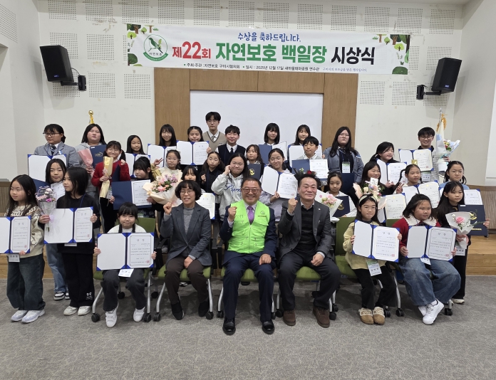[뉴스노크=김인호 기자] 구미시는 12월 17일 새마을운동테마공원 연수관에서 자연보호구미시협의회(회장 오석우) 주관으로 제22회 자연보호 백일장 시상식을 개최했다.